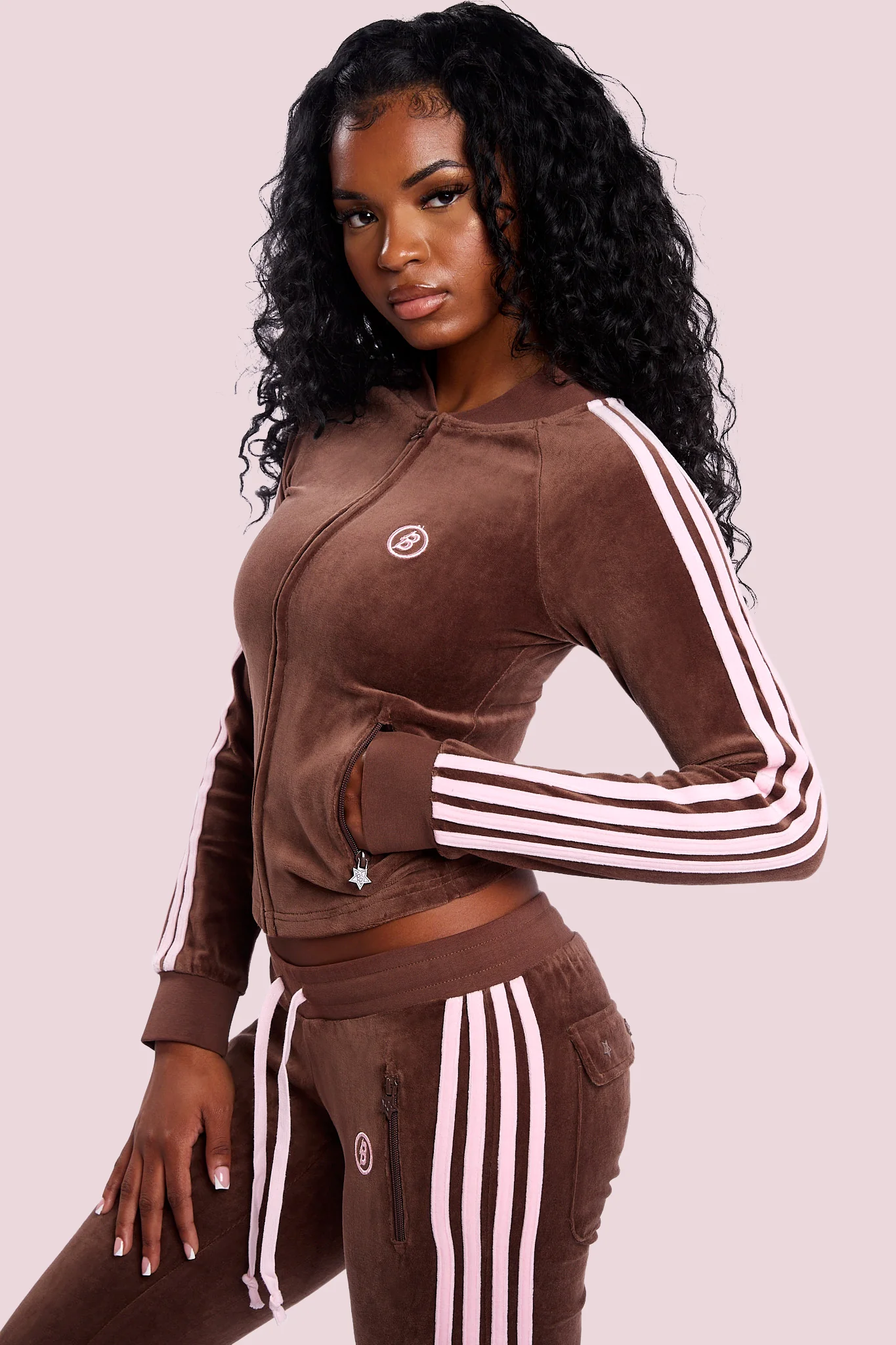 BODY VELOUR TRACK JACKET (BROWN/PINK)
