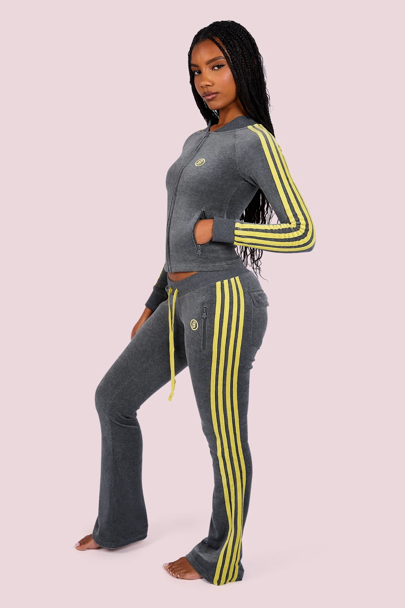 BODY VELOUR TRACK JACKET (CHARCOAL/LIME YELLOW)