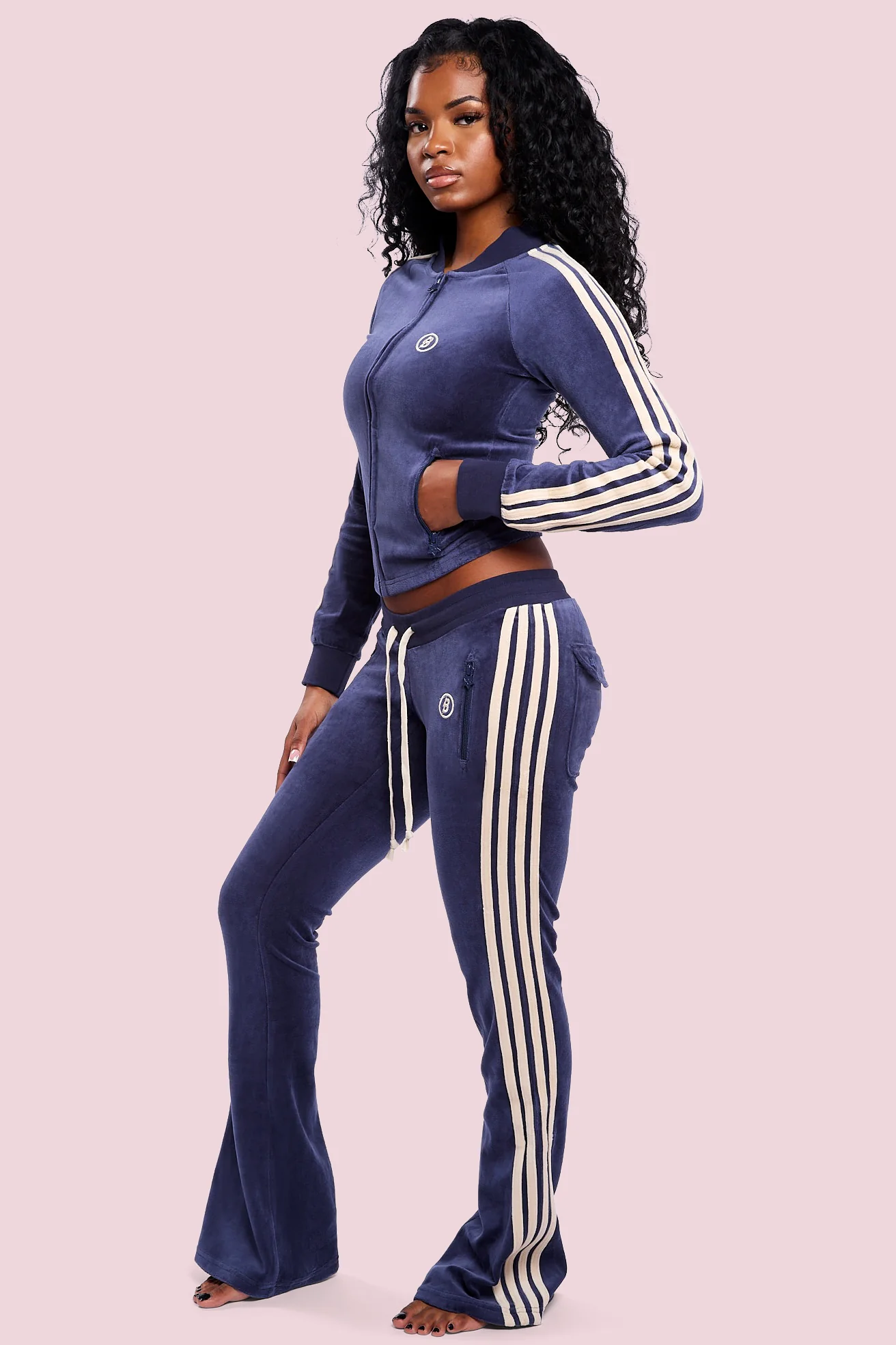 Finished with an athletic stripe design, custom seamless B-logo star zipper, and our iconic Body B logos on the hip for that elevated BODY touch. These pants are tall-girl friendly, designed to fit beautifully across multiple sizes and body types.